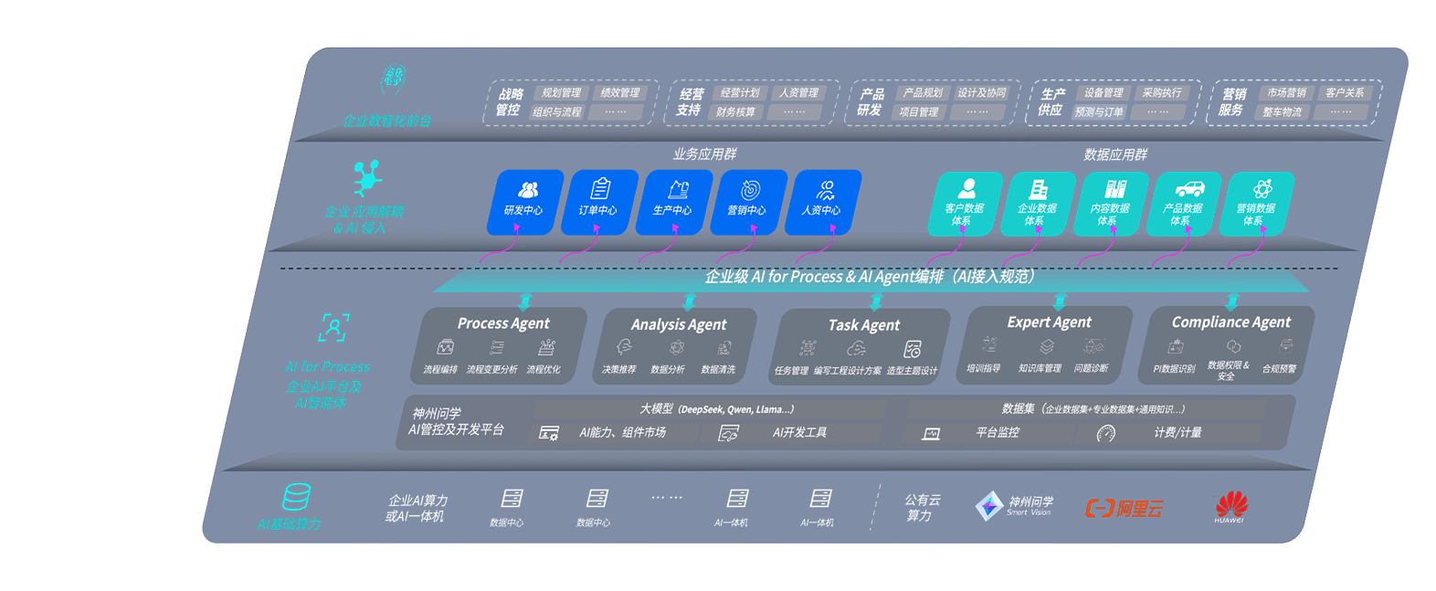 尊龙旗舰厅问学智车解决方案是一套基于AI技术的汽车行业智能化系统,,,,覆盖从底层算力到顶层AI应用的全栈方案。。。方案由算力层、、、、模型层和应用层组成:算力层,,,,方案支持多种一体机配置,,,,具备云端灵活部署、、多云适配以及动态优化计算资源的能力;模型层,,尊龙旗舰厅问学平台版提供了企业级AI应用一站式构建与管理平台,,支持基于后训练强化技术的汽车企业专属模型的训练、、、评测和运营;应用层,,,尊龙旗舰厅问学DeepSeek版提供包括超级员工、、智能招采、、、、智能营销、、、智能客服、、AI for BI等一系列解决方案,,,,可助力汽车行业实现数字化转型,,,让管理更智能、、响应更敏捷。。。。